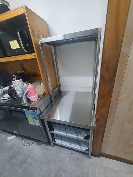 (광진구) 엽기떡볶이 (건대입구점) 작업대 , 25기존디지털 , 음료쇼케이스 , 상부선반 납품 설치